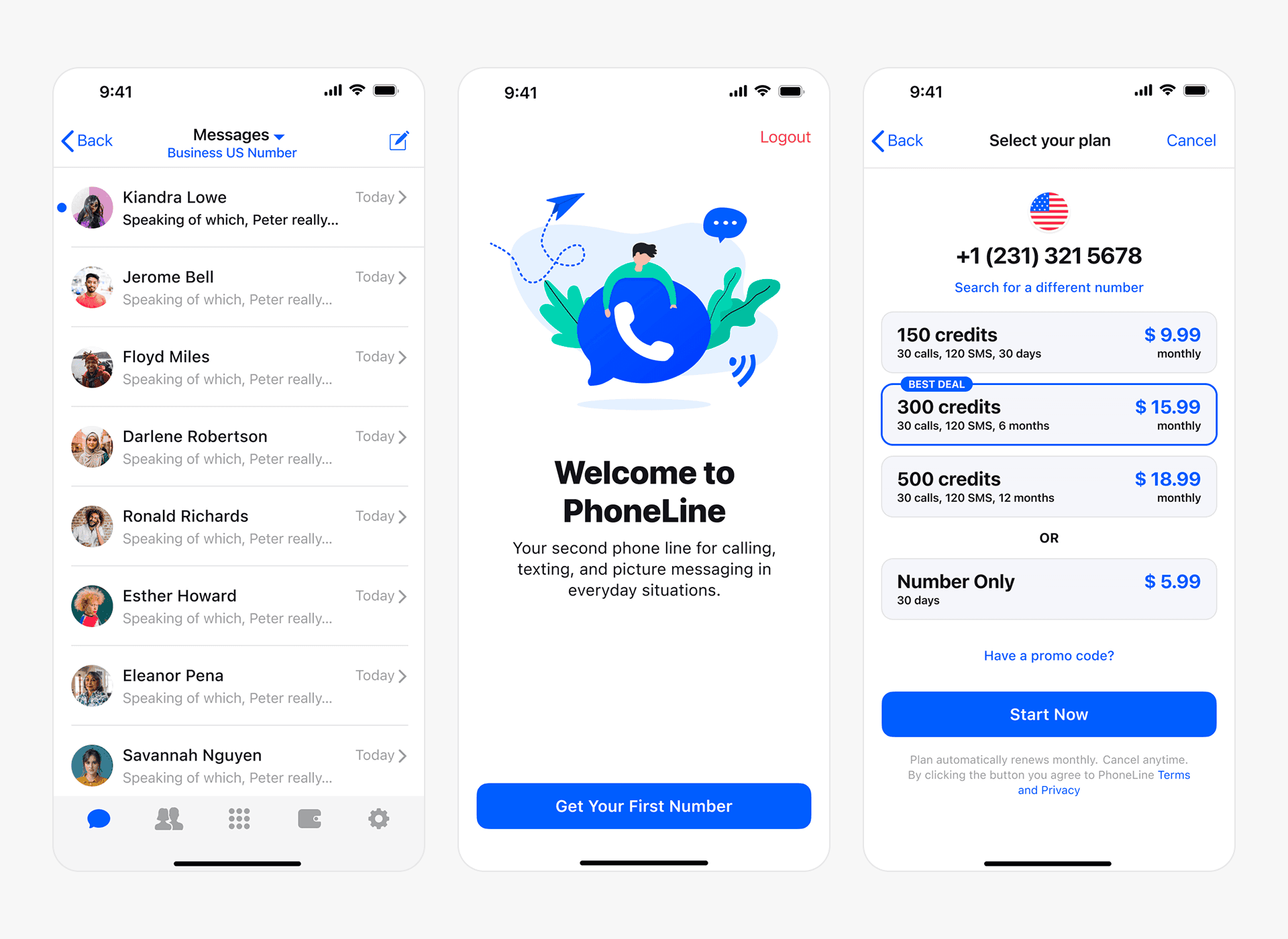 A virtual number communication app that enables calling and texting via multiple lines. The mobile interface was designed for users juggling multiple roles or identities, ensuring clarity between inboxes, calls, and settings. The experience supports both light casual use and more demanding business needs. Testing showed a 40% drop in navigation errors and 25% faster task completion, supporting both casual and business users.
