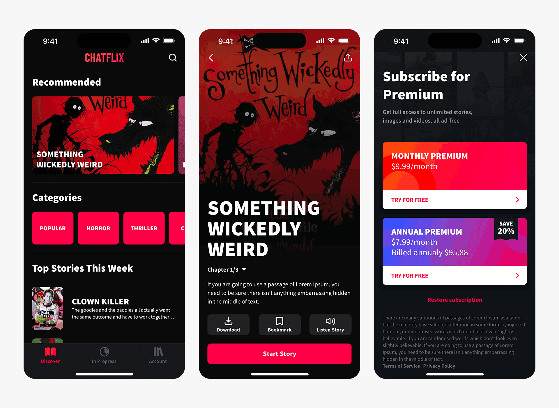 ChatFlix is a mobile app designed for fans of immersive, interactive storytelling. It lets users dive into chat-based fiction-captivating stories told through text message exchanges between characters.